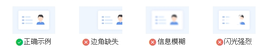 请确保身份证件边框完整,字迹清晰可见,亮度均匀,文字正向显示。