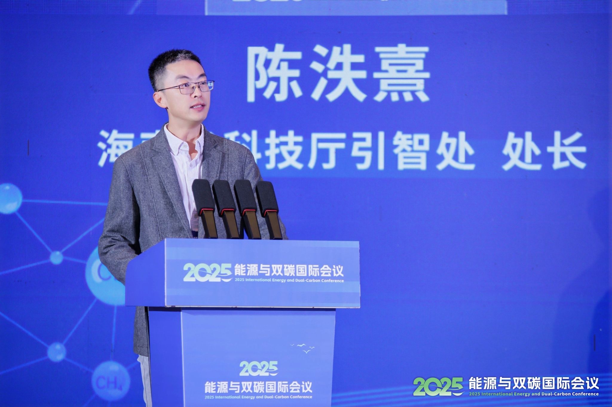 海南省科学技术厅引智处处长陈泆熹为大会致辞。他指出,海南自贸港全岛封关运作后,“零关税”科研设备进口、高端人才15%个税优惠、86国人员入境免签等政策红利,为能源与双碳领域的国际合作提供了前所未有的发展机遇。海南丰富的“绿电”资源与广阔的“蓝碳”空间,也使其成为开展相关研究的天然“试验田”,期待与会专家依托自贸港平台,推动更多创新成果在琼落地转化。